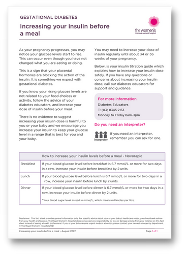 This page contains information on advice on increasing my pre-meal insulin for our gestational diabetes patients.