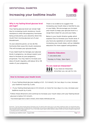 This page contains information on Increasing your bedtime insulin for our gestational diabetes patients.